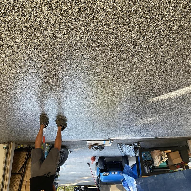 Exclusive Epoxy Coatings removed two layers of existing paint from a garage floor in Atlanta, Georgia. The team then prepared the surface to the correct concrete surface profile (CSP) and applied an epoxy hybrid stone flake coating.