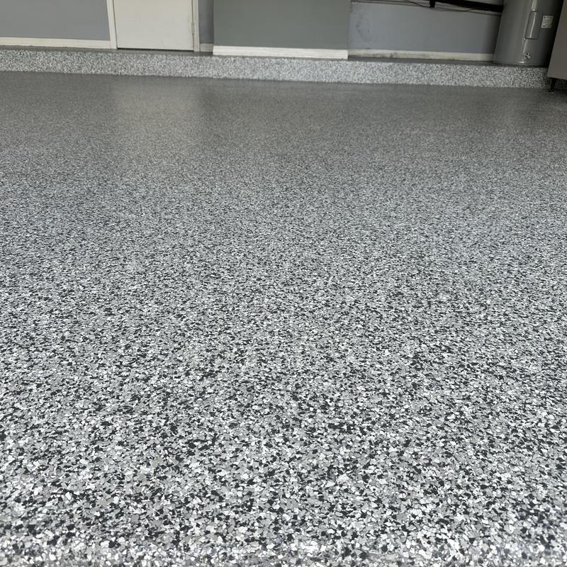 Exclusive Epoxy Coatings applied a Schist Marble Flake finish to a garage floor in Davie, Florida. This service included surface preparation and flake installation to create a durable and uniform epoxy floor. The flake system offers consistent texture and color throughout the space.