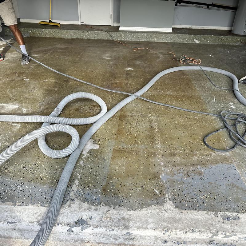 Exclusive Epoxy Coatings completed garage floor preparation in Apopka, Florida. The team began grinding the surface at 8 a.m. to ensure proper adhesion for the next epoxy application stage. This process helps create a clean and even base for durable garage flooring.