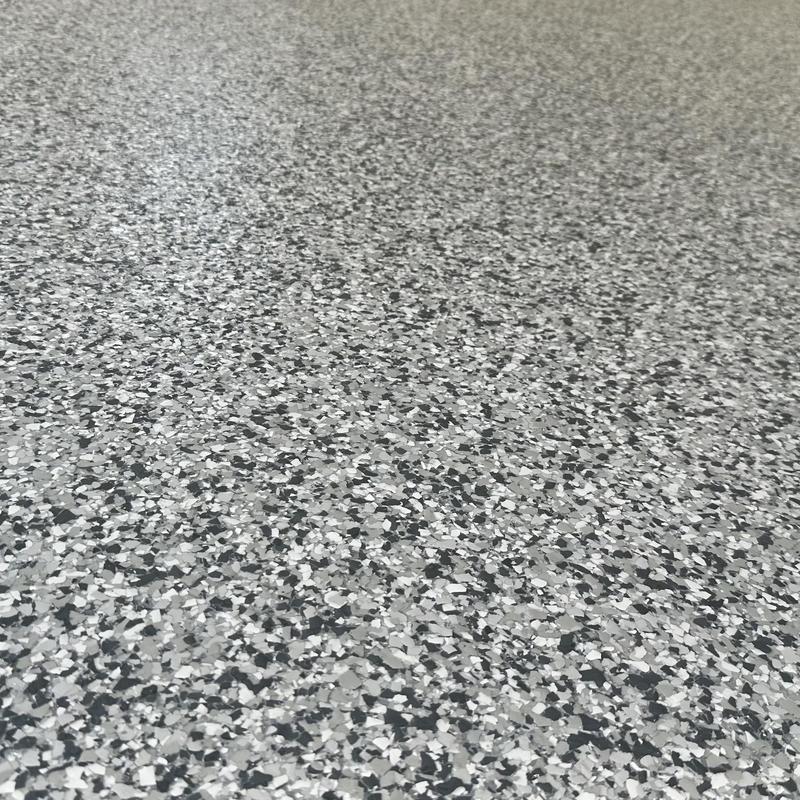 Exclusive Epoxy Coatings applied a Schist Marble Flake finish to a garage floor in Davie, Florida. This service included surface preparation and flake installation to create a durable and uniform epoxy floor. The flake system offers consistent texture and color throughout the space.
