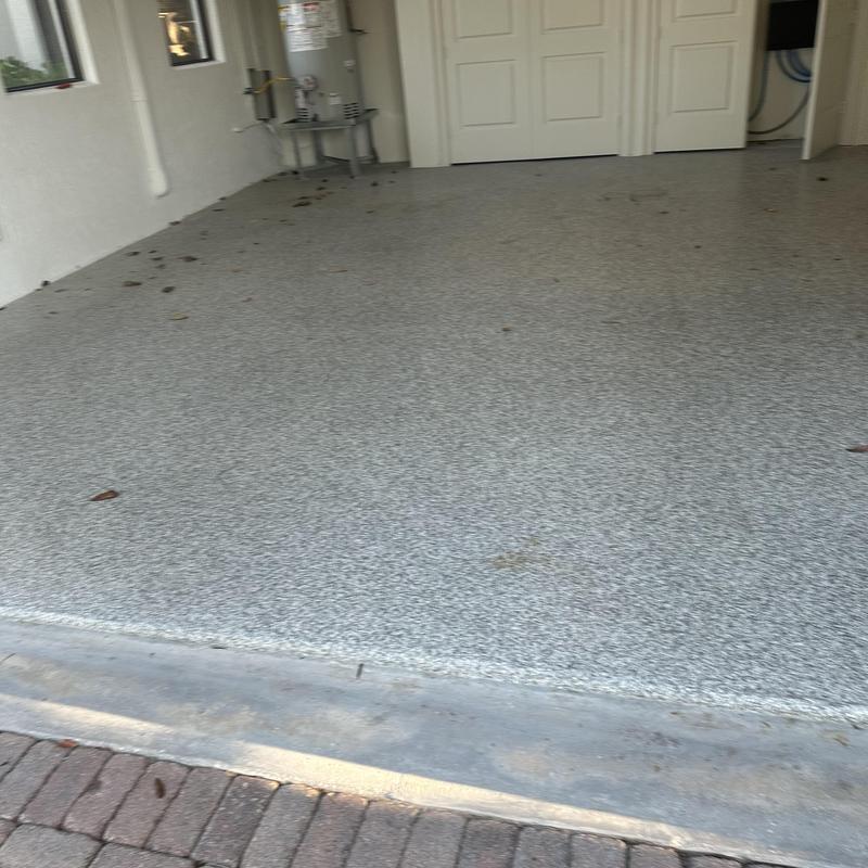 Exclusive Epoxy Coatings installed an epoxy flake coating on a garage floor in Pembroke Pines, Florida. The project improved the surface with a durable and easy-to-clean finish. Epoxy flakes help reduce slips while giving the floor a uniform appearance suited for garage use.