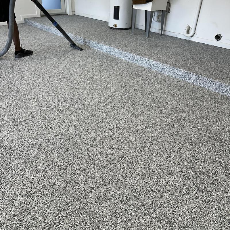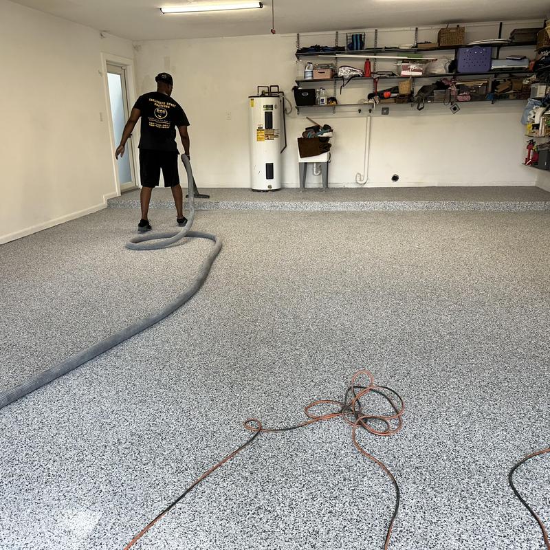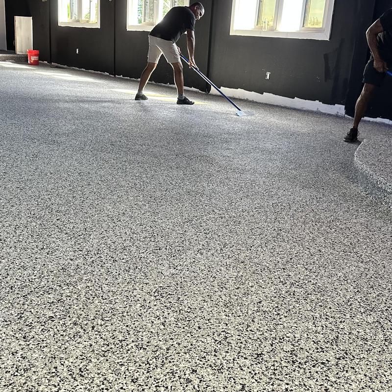 Exclusive Epoxy Coatings prepared a garage floor for an epoxy hybrid stone finish in Weston, Florida. The team completed all surface preparation steps to ensure proper bonding and long-term durability. This project focused on creating a resilient and clean surface for the decorative epoxy application.