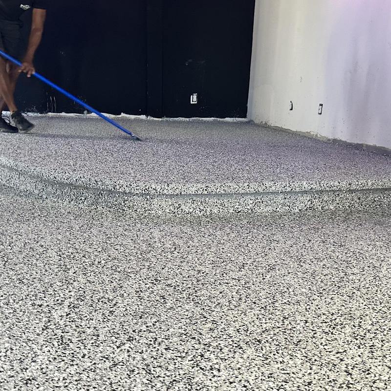 Exclusive Epoxy Coatings installed an epoxy flake floor system in Miami, Florida. The team applied durable flake layers suitable for both residential and commercial spaces. This system improves surface strength and supports long-term use in high-traffic environments.