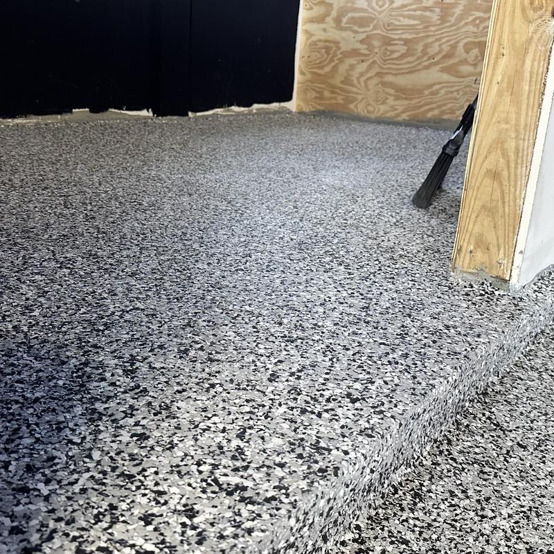 Exclusive Epoxy Coatings installed an epoxy domino flake system on a garage floor in Davie, Florida. The team applied a durable coating designed to improve surface strength and appearance. This project enhanced the garage's flooring with a precise flake pattern for lasting performance.