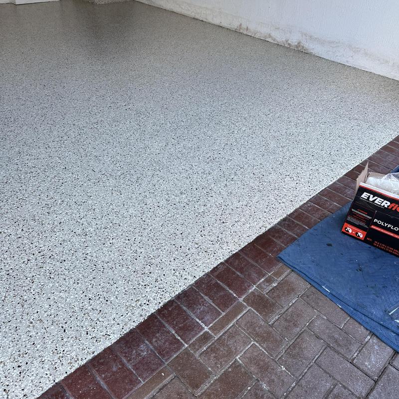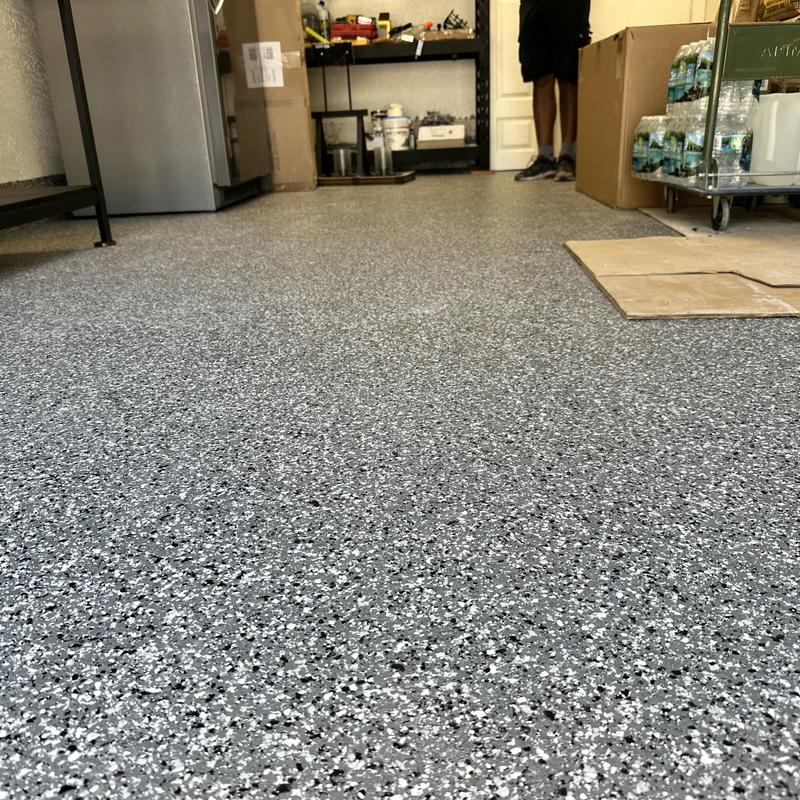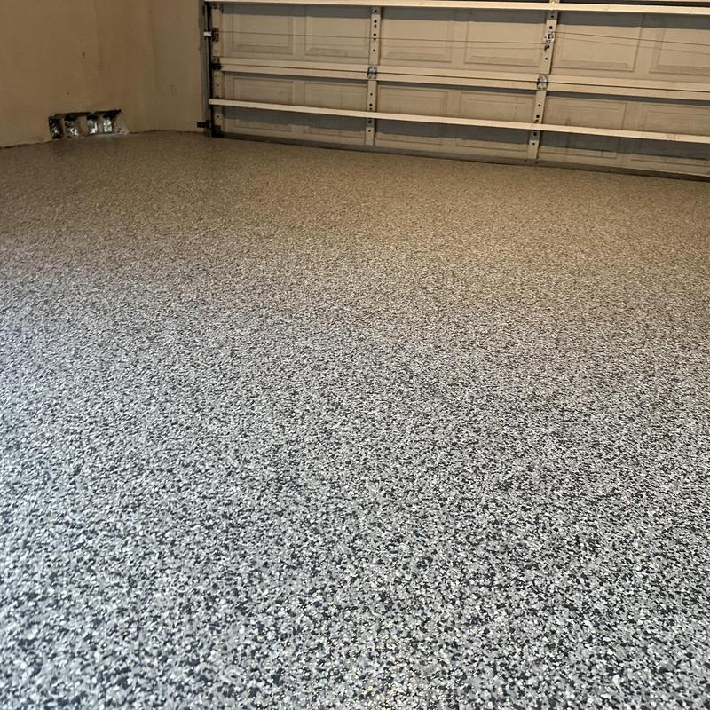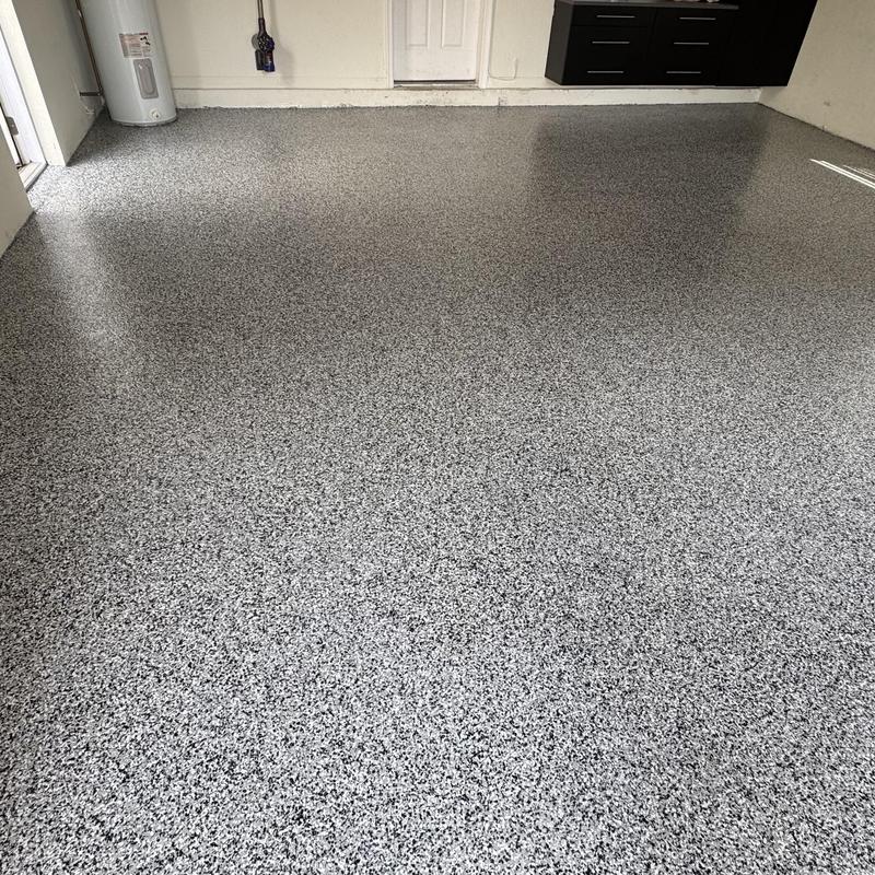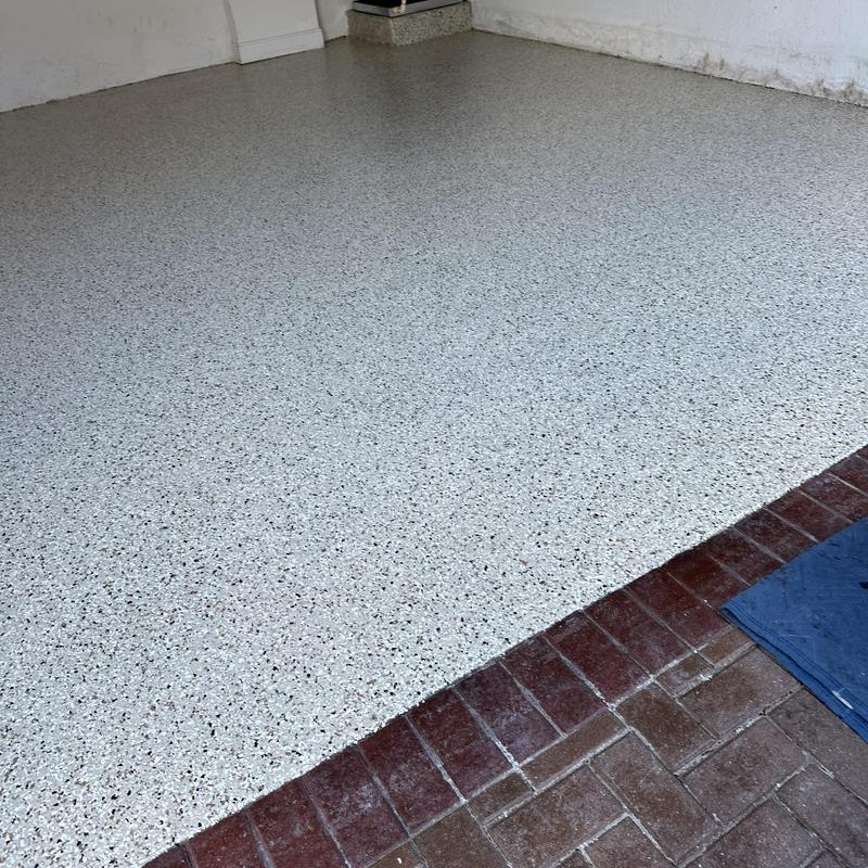 Exclusive Epoxy Coatings installed an epoxy flake coating on a garage floor in Pembroke Pines, Florida. The project improved the surface with a durable and easy-to-clean finish. Epoxy flakes help reduce slips while giving the floor a uniform appearance suited for garage use.