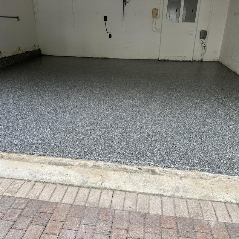 Exclusive Epoxy Coatings installed an epoxy flake system on a garage floor in a new home in Delray Beach, Florida. The coating adds a durable surface that withstands heavy use and supports easier maintenance. This application improves floor performance in residential environments exposed to daily wear.