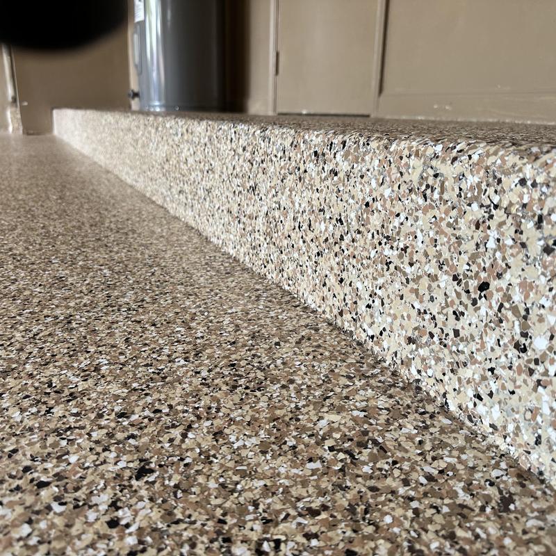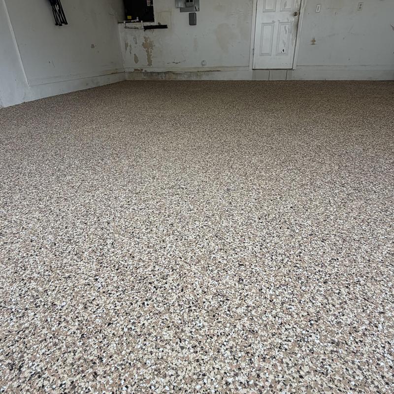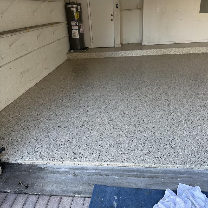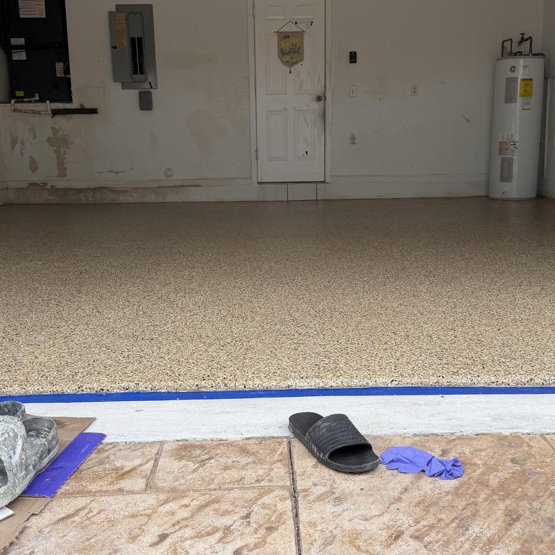 Exclusive Epoxy Coatings installed an Epoxy Shoreline Flake Garage Floor in Cocoa, Florida. The team completed the project in one day, starting at 9:00 AM and finishing at 3:30 PM. The service included a full garage floor coating using their one-day epoxy system.