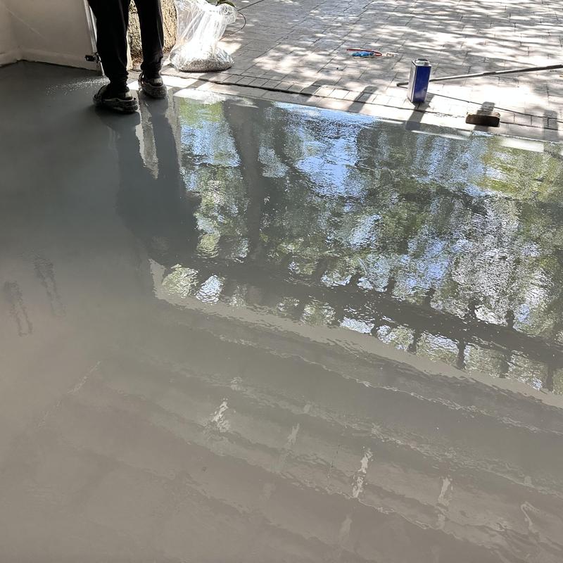 Exclusive Epoxy Coatings applied an epoxy moisture vapor barrier to a garage floor in Hallandale Beach, Florida. The barrier helps prevent ground moisture from affecting epoxy coatings. The team installs this layer on all first-floor epoxy projects for added protection in residential and commercial buildings across South Florida.