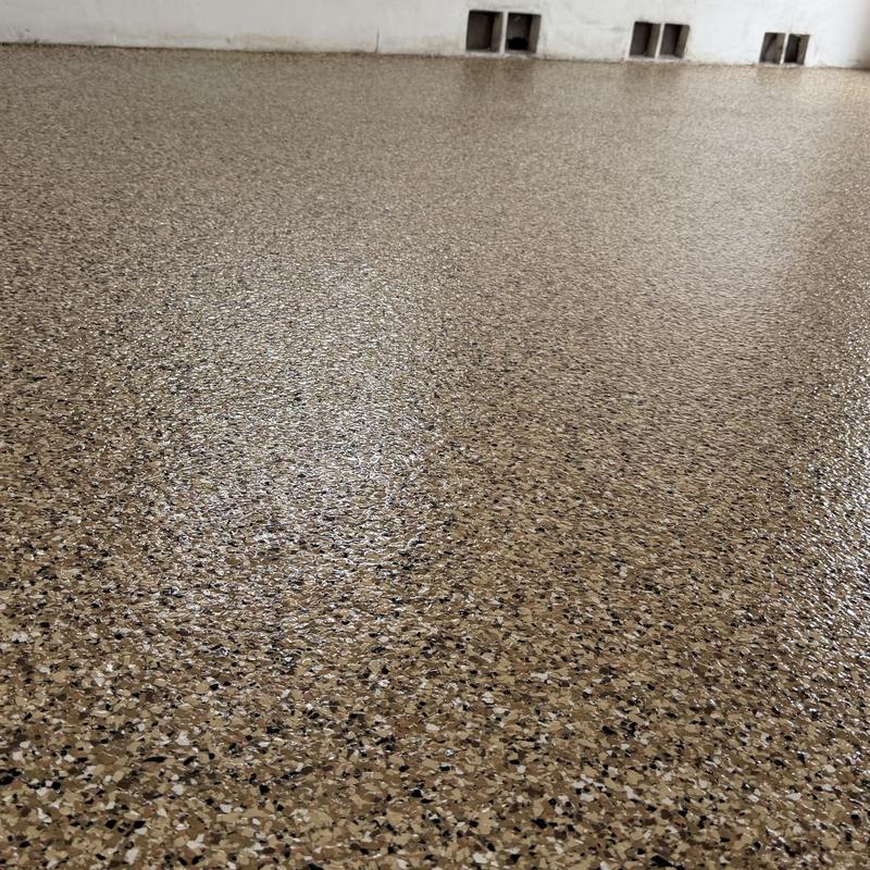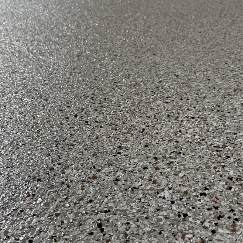Exclusive Epoxy Coatings applied a Schist Marble Flake finish to a garage floor in Davie, Florida. This service included surface preparation and flake installation to create a durable and uniform epoxy floor. The flake system offers consistent texture and color throughout the space.