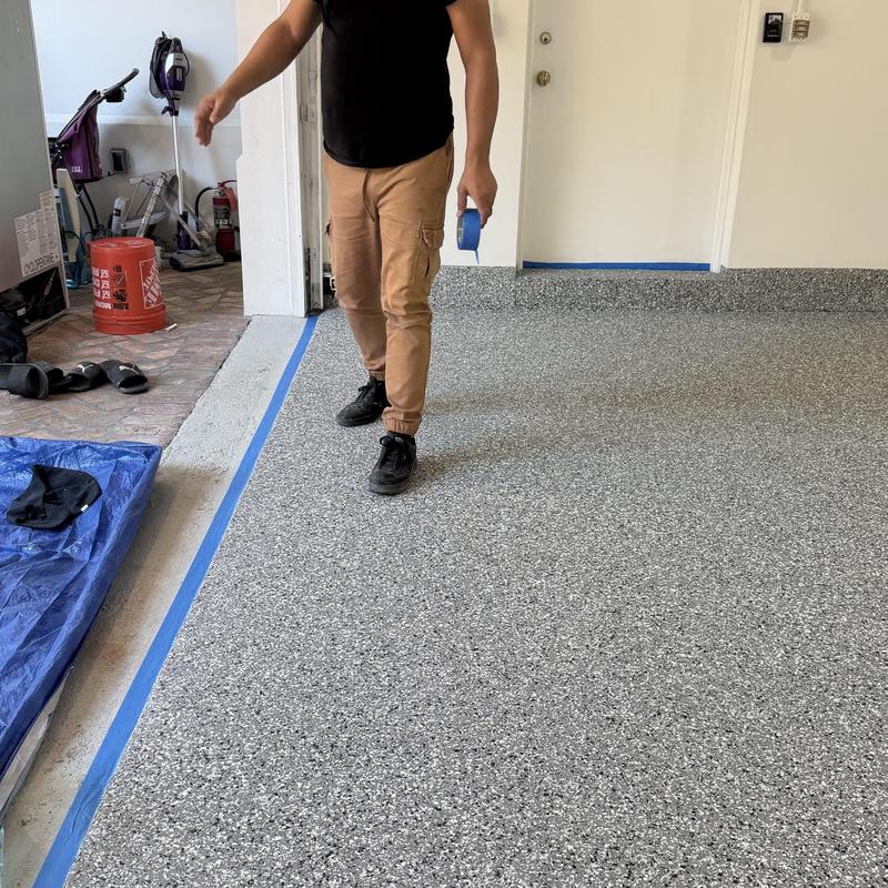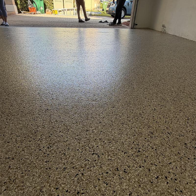 Exclusive Epoxy Coatings installed an epoxy flake coating on a garage floor in Pembroke Pines, Florida. The project improved the surface with a durable and easy-to-clean finish. Epoxy flakes help reduce slips while giving the floor a uniform appearance suited for garage use.