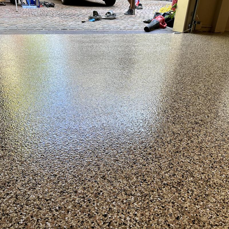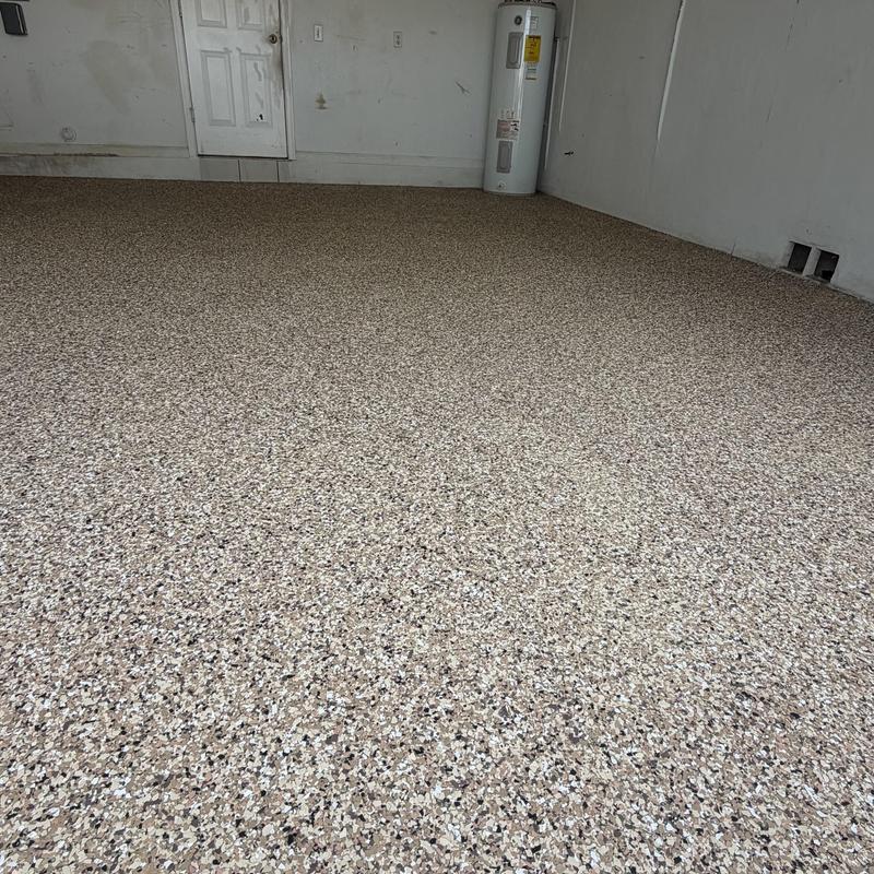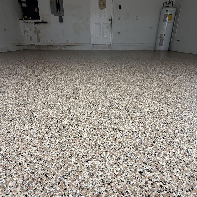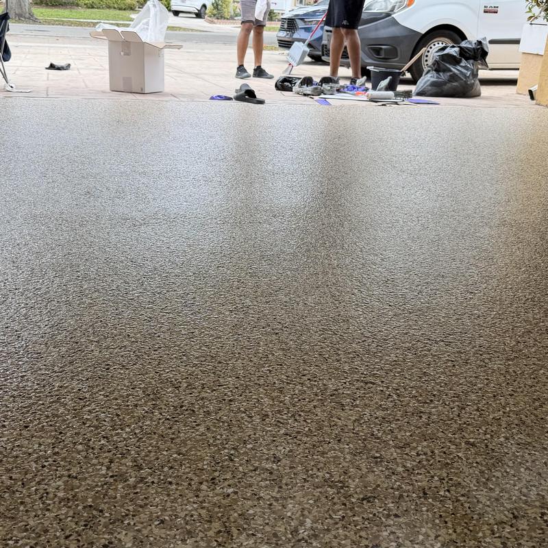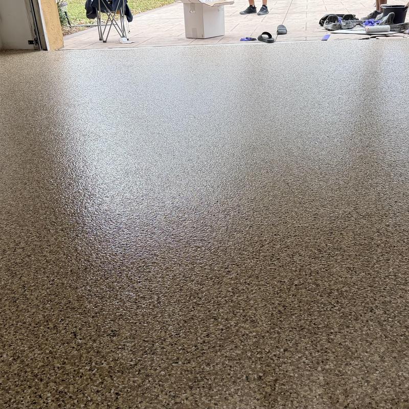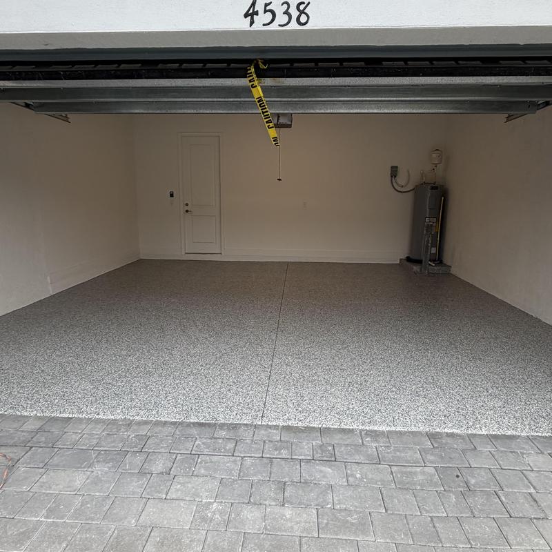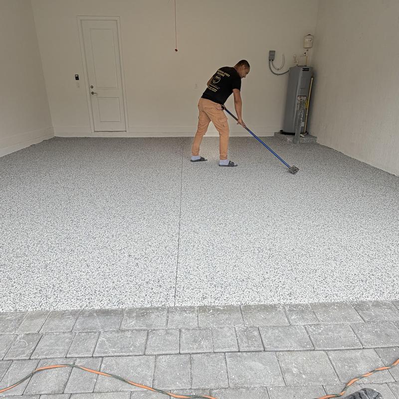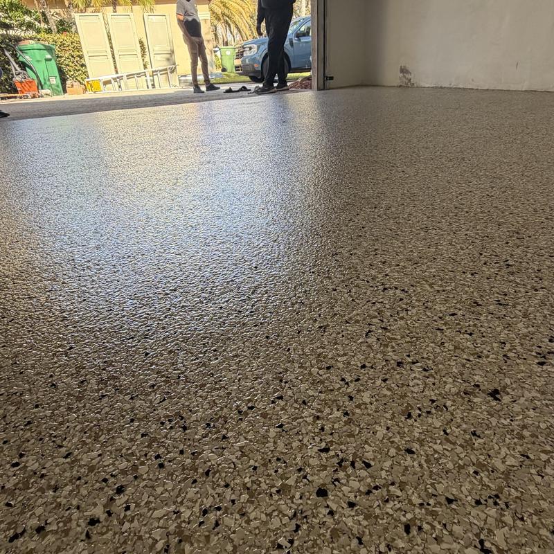 Exclusive Epoxy Coatings installed an Epoxy Shoreline Flake System on a garage floor in Sunrise, Florida. The team applied a strong epoxy coating to improve surface durability. This service helps protect floors from wear and offers a clean, solid finish for garages used in residential or commercial settings.