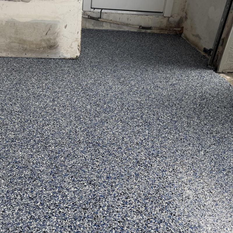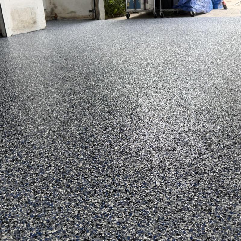 Exclusive Epoxy Coatings installed a blue granite hybrid stone epoxy floor in a garage in Weston, Florida. This flooring resists stains, moisture, UV damage, and heavy traffic. The seamless finish combines granite appearance with industrial-grade epoxy strength, making it well-suited for South Florida’s climate and enhancing the space’s durability.
