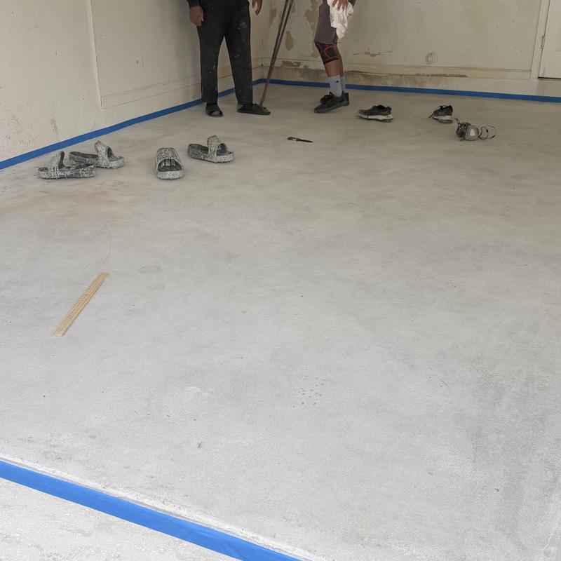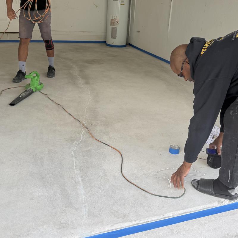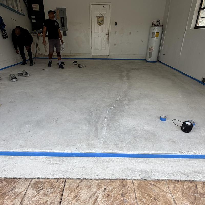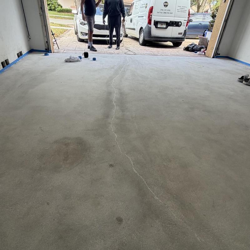 Exclusive Epoxy Coatings completed early morning grinding and surface repairs for an epoxy flake garage floor coating in Weston, Florida. The team prepared the concrete to ensure proper adhesion and durability for the upcoming installation.