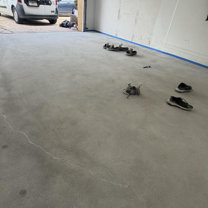 Exclusive Epoxy Coatings removed a failed garage floor coating and installed a new epoxy system in Hallandale Beach, Florida. The previous coating had cracked and remained uncured after a year. The team stripped the damaged layer and applied a proper base and finish to restore durability and function to the garage floor.