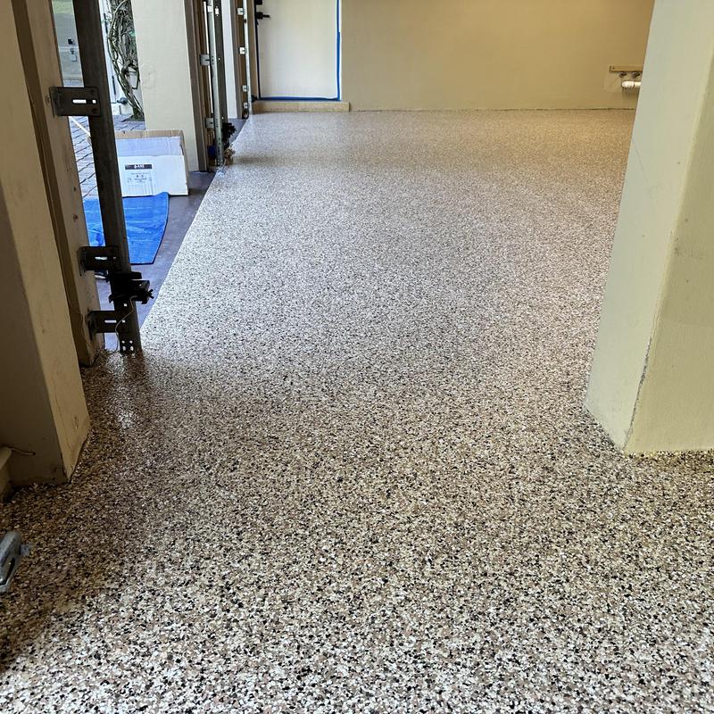 Exclusive Epoxy Coatings installed an epoxy flake flooring system in a 1,500-square-foot garage in Pinecrest, Florida. The project improved the floor's surface with a durable coating suited for high-traffic residential use. This installation helps protect the concrete and supports long-term performance in garage environments.