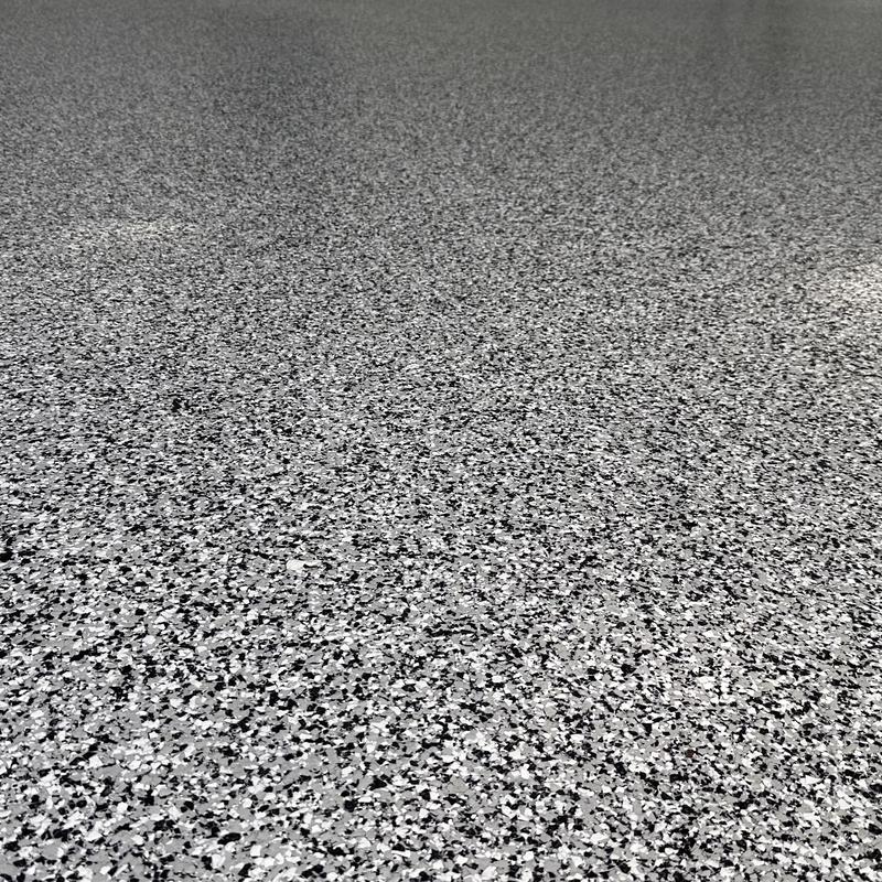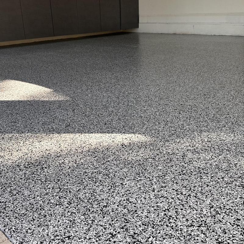 Exclusive Epoxy Coatings removed two layers of existing paint from a garage floor in Atlanta, Georgia. The team then prepared the surface to the correct concrete surface profile (CSP) and applied an epoxy hybrid stone flake coating.