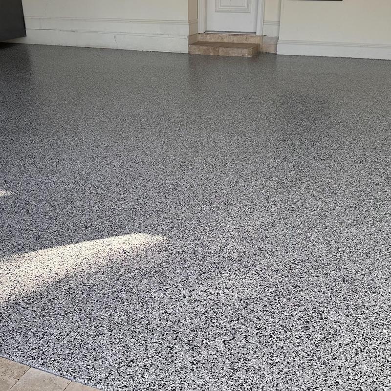 Exclusive Epoxy Coatings installed an epoxy flake system on a garage floor in a new home in Delray Beach, Florida. The coating adds a durable surface that withstands heavy use and supports easier maintenance. This application improves floor performance in residential environments exposed to daily wear.