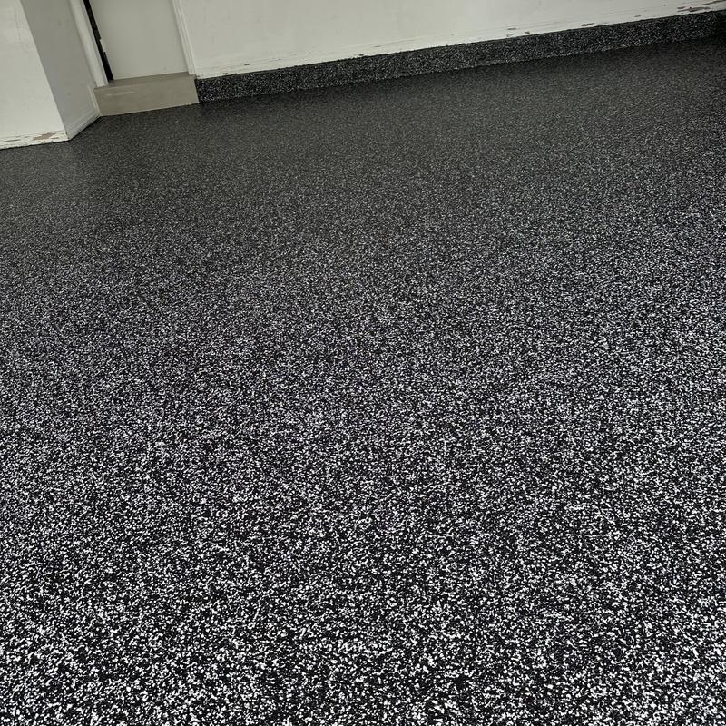 Exclusive Epoxy Coatings removed two layers of existing paint from a garage floor in Atlanta, Georgia. The team then prepared the surface to the correct concrete surface profile (CSP) and applied an epoxy hybrid stone flake coating.