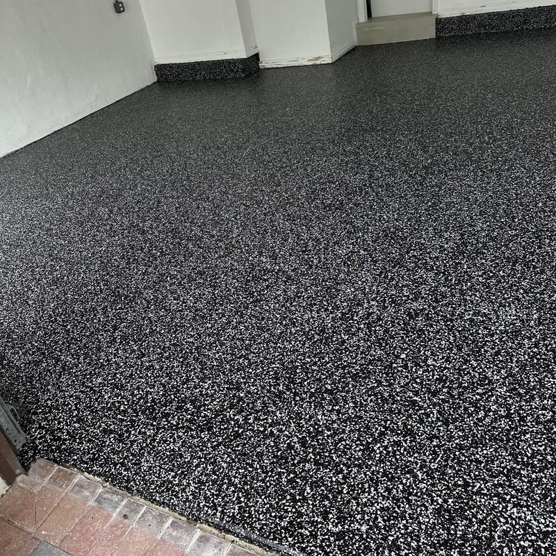 Exclusive Epoxy Coatings installed an epoxy flake coating on a garage floor in Pembroke Pines, Florida. The project improved the surface with a durable and easy-to-clean finish. Epoxy flakes help reduce slips while giving the floor a uniform appearance suited for garage use.