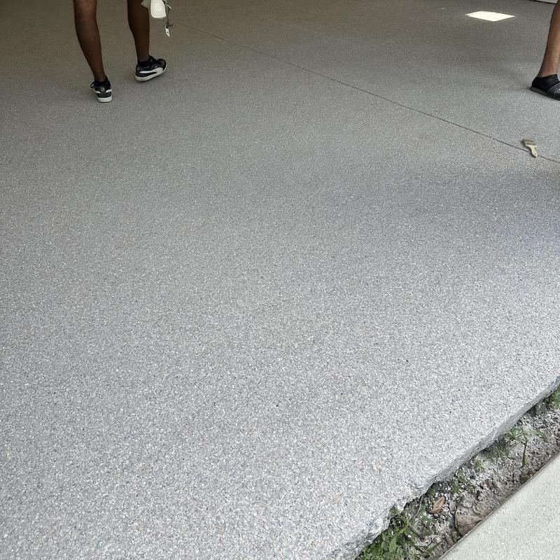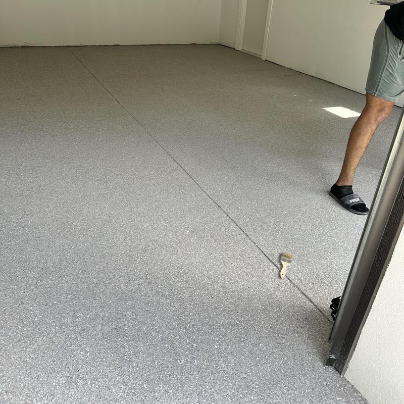 Exclusive Epoxy Coatings applied an epoxy moisture vapor barrier and broadcasted Hybrid Stone in Davie, Florida. This process helps protect concrete surfaces from moisture while adding a durable, textured overlay for lasting performance.
