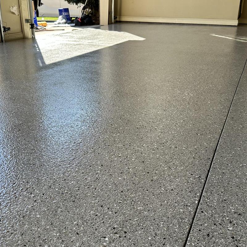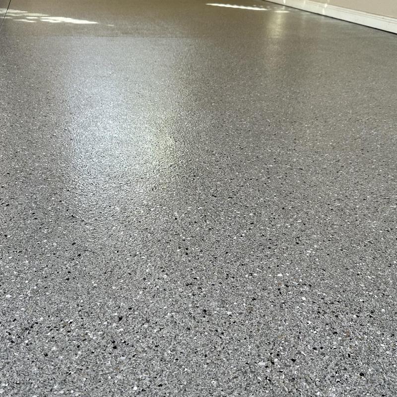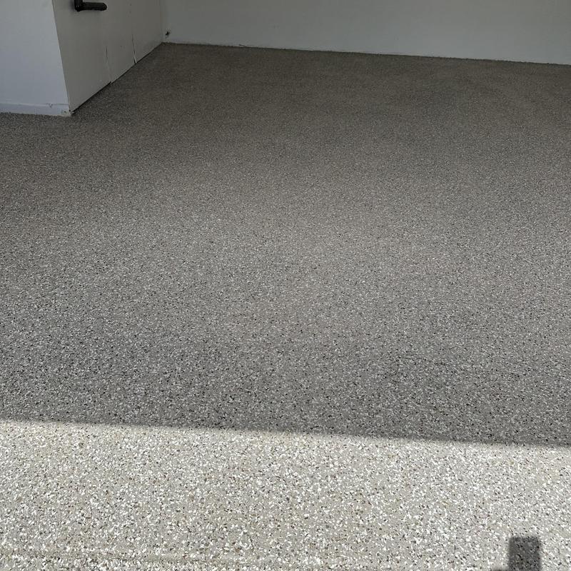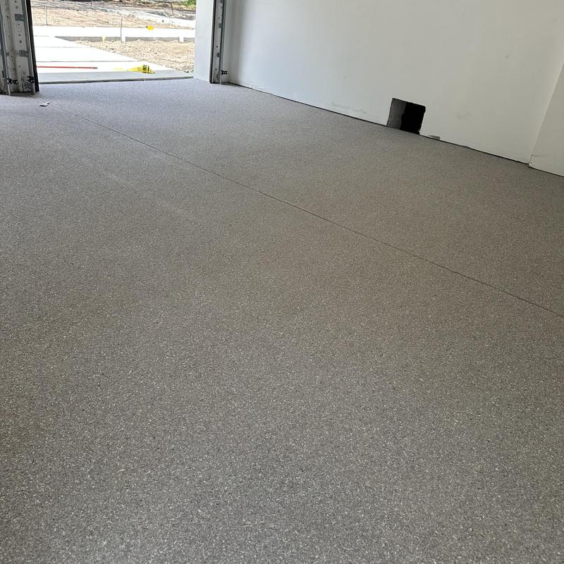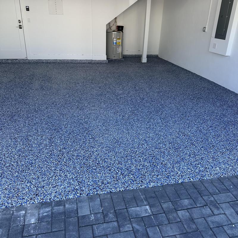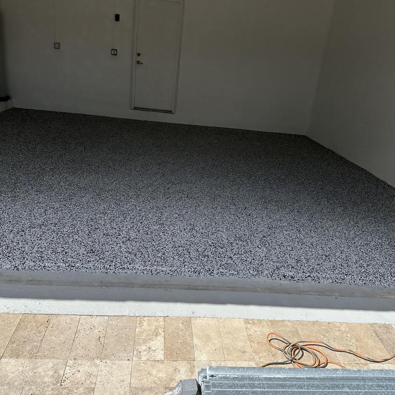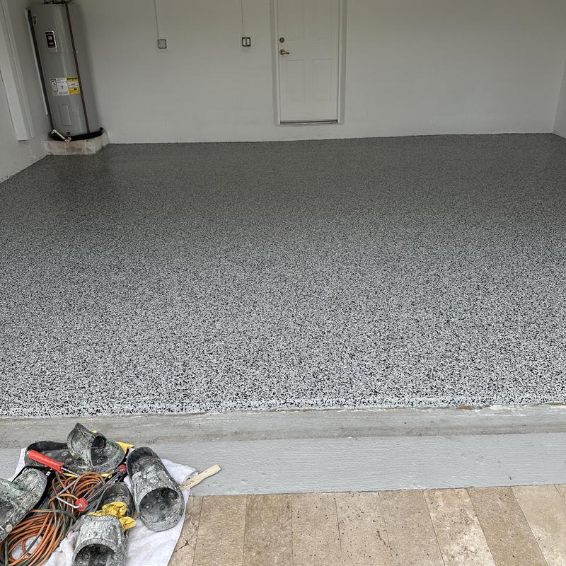 Exclusive Epoxy Coatings installed an epoxy flake system on a garage floor in a new home in Delray Beach, Florida. The coating adds a durable surface that withstands heavy use and supports easier maintenance. This application improves floor performance in residential environments exposed to daily wear.