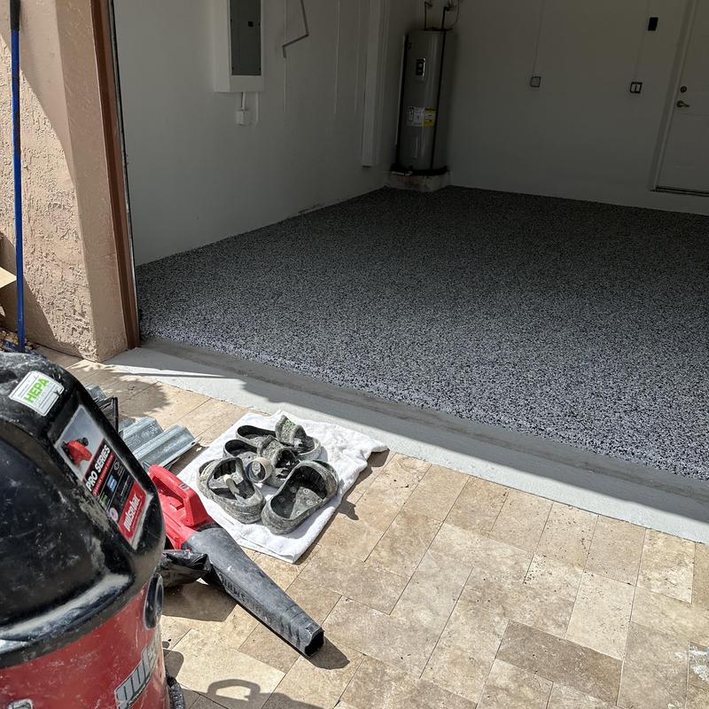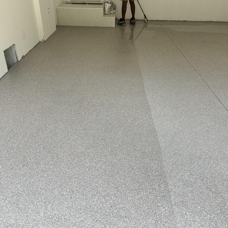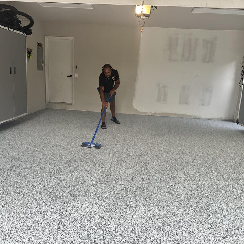 Exclusive Epoxy Coatings prepared a garage floor for an epoxy hybrid stone finish in Weston, Florida. The team completed all surface preparation steps to ensure proper bonding and long-term durability. This project focused on creating a resilient and clean surface for the decorative epoxy application.