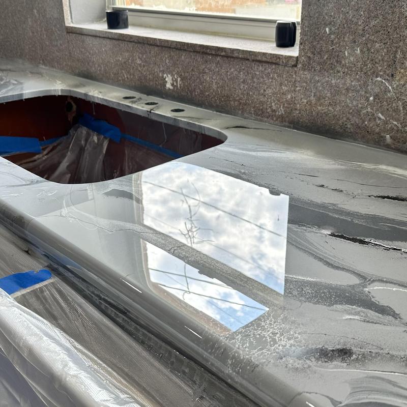 Exclusive Epoxy Coatings resurfaced a granite countertop in Miami, Florida, creating a marble-inspired finish. The team prepped, refinished, and hand-detailed the surface to replicate the look of natural marble. The new surface shows deep veining and a smooth finish that changes the look of the entire room.