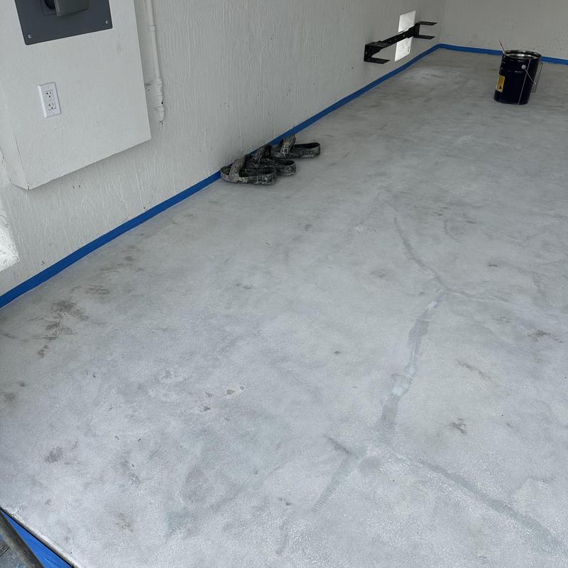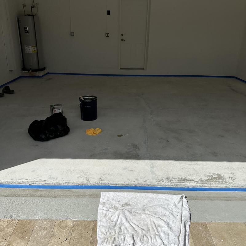 Exclusive Epoxy Coatings prepared a garage floor in Fort Lauderdale, Florida for an epoxy flake system. The team ground and repaired the surface, then planned to apply an epoxy moisture vapor barrier to improve surface readiness before the final coating installation.