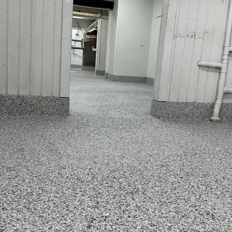 Exclusive Epoxy Coatings installed an epoxy quartz system in a commercial kitchen in Miami Beach, Florida. This system improves durability and supports easy cleaning in high-traffic food service environments. The quartz blend adds slip resistance and extends surface lifespan.