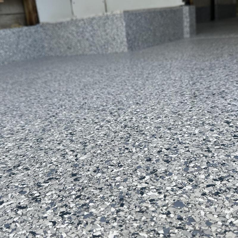 Exclusive Epoxy Coatings applied a Schist Marble Flake finish to a garage floor in Davie, Florida. This service included surface preparation and flake installation to create a durable and uniform epoxy floor. The flake system offers consistent texture and color throughout the space.