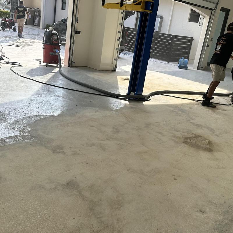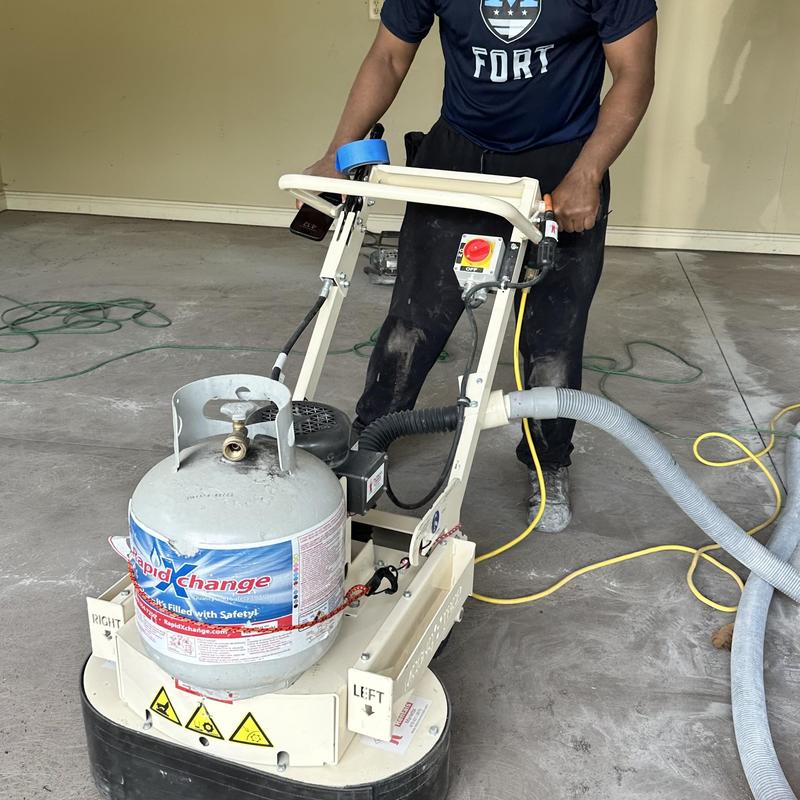 Exclusive Epoxy Coatings completed garage floor preparation in Apopka, Florida. The team began grinding the surface at 8 a.m. to ensure proper adhesion for the next epoxy application stage. This process helps create a clean and even base for durable garage flooring.