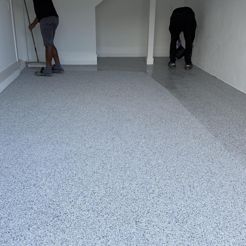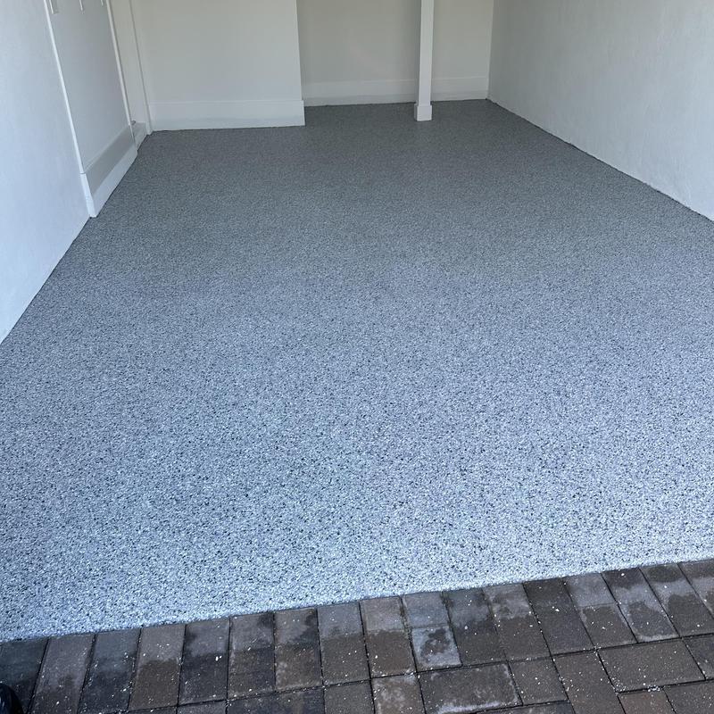 Exclusive Epoxy Coatings installed an Epoxy Shoreline Flake System on a garage floor in Sunrise, Florida. The team applied a strong epoxy coating to improve surface durability. This service helps protect floors from wear and offers a clean, solid finish for garages used in residential or commercial settings.