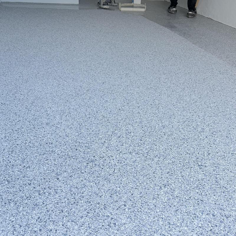 Exclusive Epoxy Coatings installed an epoxy flake coating on a garage floor in Pembroke Pines, Florida. The project improved the surface with a durable and easy-to-clean finish. Epoxy flakes help reduce slips while giving the floor a uniform appearance suited for garage use.