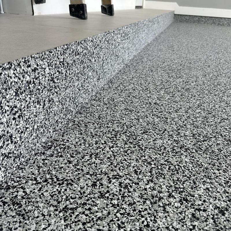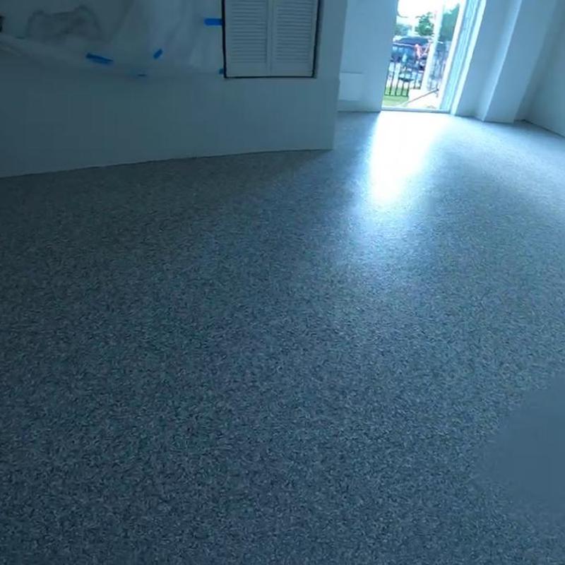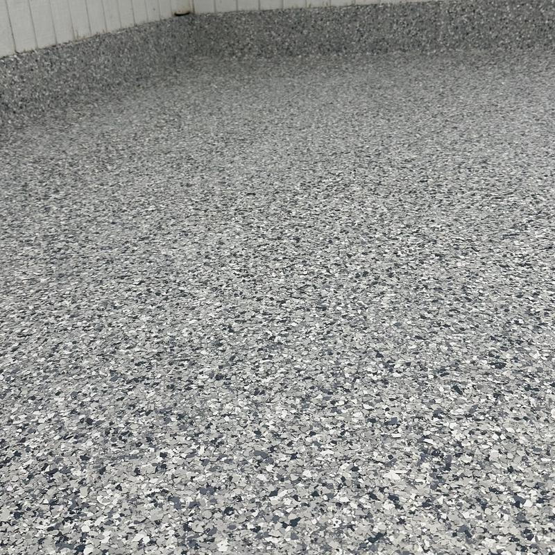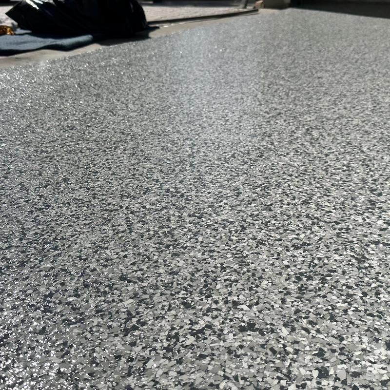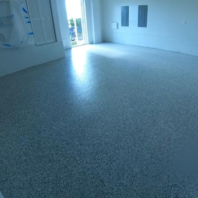 Exclusive Epoxy Coatings applied a Schist Marble Flake finish to a garage floor in Davie, Florida. This service included surface preparation and flake installation to create a durable and uniform epoxy floor. The flake system offers consistent texture and color throughout the space.