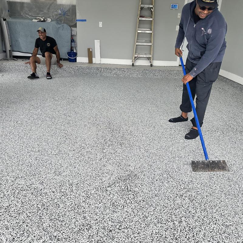 Exclusive Epoxy Coatings prepared a garage floor for an epoxy hybrid stone finish in Weston, Florida. The team completed all surface preparation steps to ensure proper bonding and long-term durability. This project focused on creating a resilient and clean surface for the decorative epoxy application.