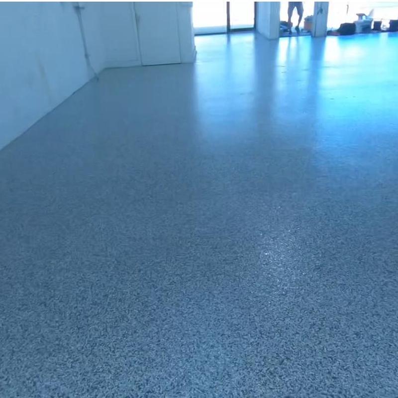 Exclusive Epoxy Coatings installed epoxy domino flake flooring in a garage in Islamorada, FL. The coating resists heat, humidity, and salt air. The surface provides slip resistance and protects the floor from wear. This service improves garage durability in coastal environments.