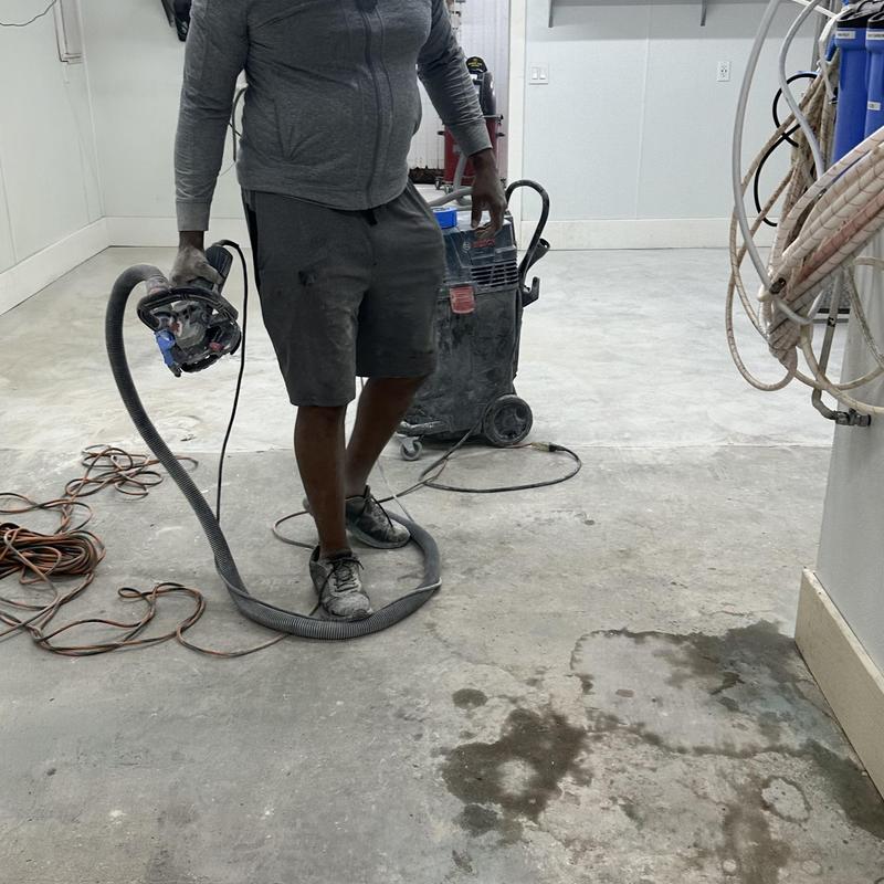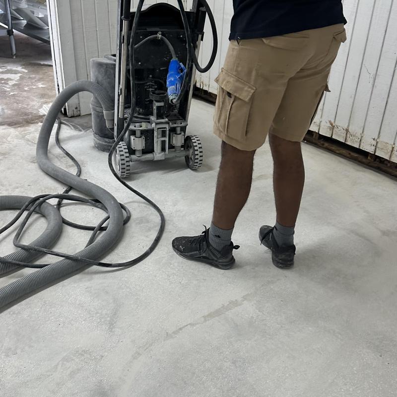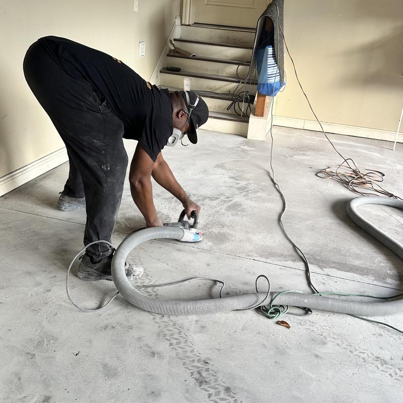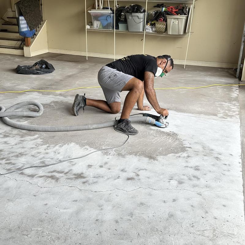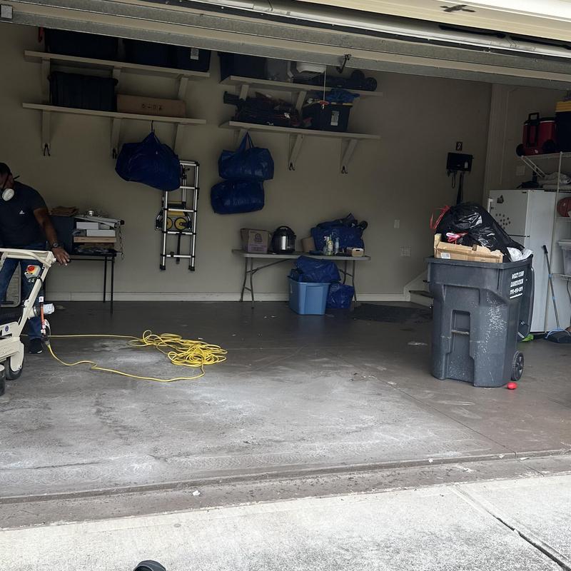 Exclusive Epoxy Coatings completed garage floor preparation in Apopka, Florida. The team began grinding the surface at 8 a.m. to ensure proper adhesion for the next epoxy application stage. This process helps create a clean and even base for durable garage flooring.
