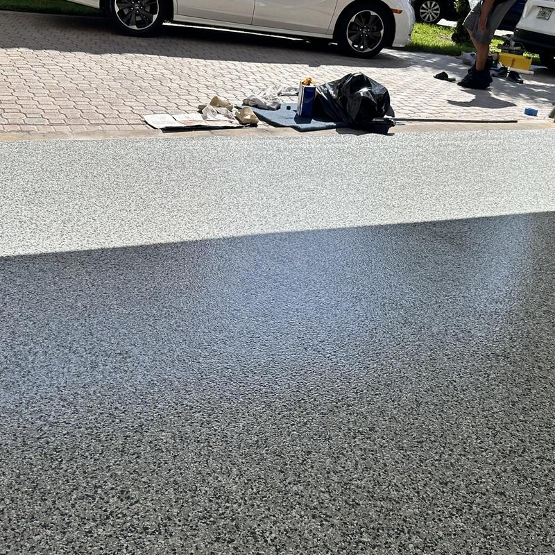 Exclusive Epoxy Coatings installed an epoxy gravel flake floor in a garage in Pembroke Pines, FL. This flooring provides a durable and low-maintenance surface suitable for residential and commercial use. Epoxy flake systems offer resistance to wear and spills, making them an effective choice for garages and other high-traffic areas.