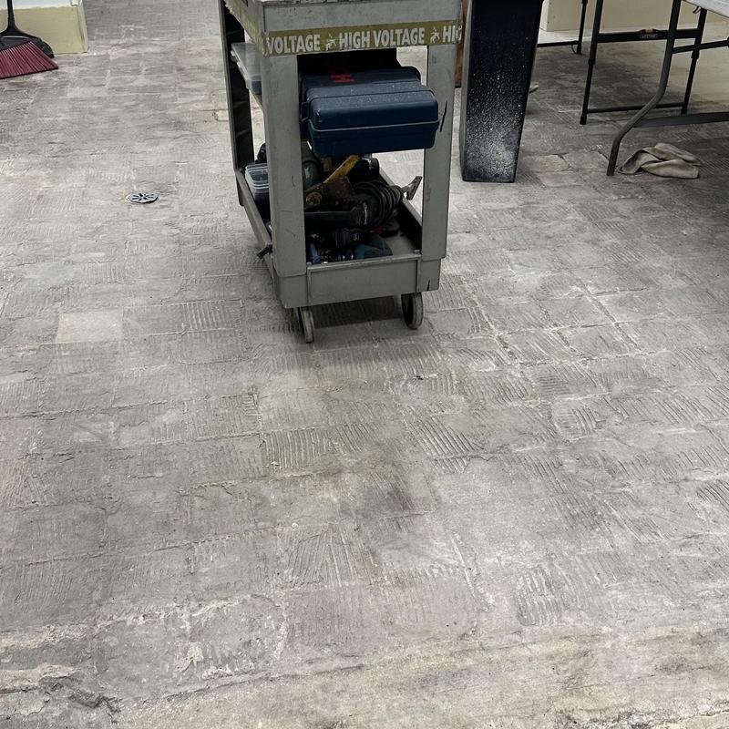 Exclusive Epoxy Coatings prepared a church kitchen and dining area in Miami, FL, for an epoxy flake flooring installation. Proper surface preparation ensures durability and adhesion. Grinding the surface removes imperfections and creates a smooth base for the epoxy application. This step is essential for a long-lasting, low-maintenance floor.