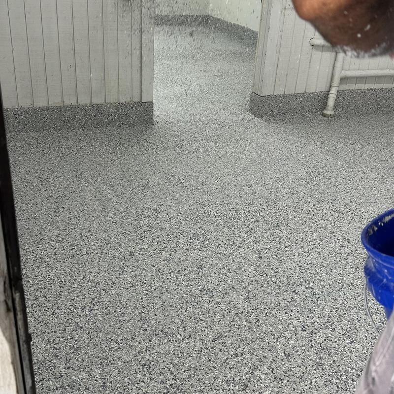 Exclusive Epoxy Coatings installed an epoxy flake floor system in Miami, Florida. The team applied durable flake layers suitable for both residential and commercial spaces. This system improves surface strength and supports long-term use in high-traffic environments.